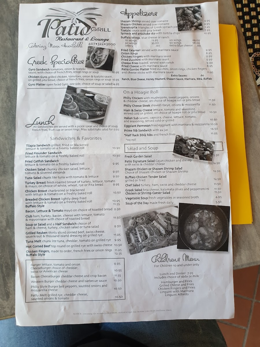 Welcome to Patio Grill, a hidden gem located at 2900 S Orlando Dr, Sanford, FL. This inviting eatery boasts a delightful outdoor patio, perfect for dining with your furry friends. Patio Grill's menu is a treasure trove of flavors, highlighted by their impressive calzones, such as the indulgent Patio Calzone loaded with pepperoni and Italian sausage, or the classic Cheese Calzone priced at just $11.